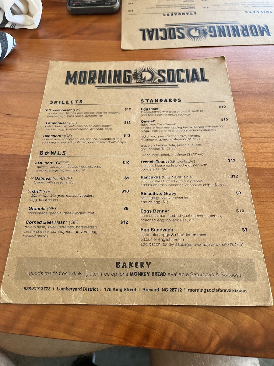 Morning Social Menu
